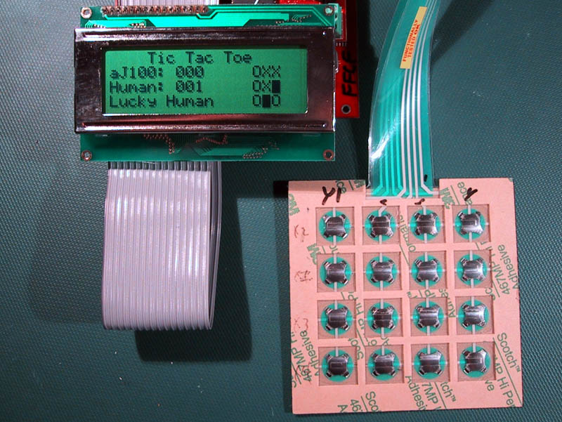 20x4 LCD and keypad. Includes keypad test, TicTacToe and a 20x4
