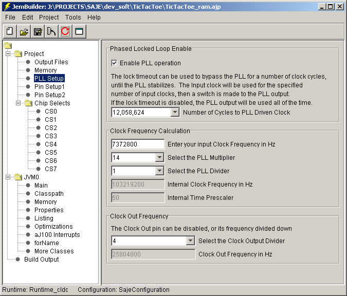 above. (This runs the aJ100 at 103 MHz and uses its CLKOUT/4 to