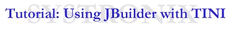 | Your 1st TINI Program | A simple first application, shows how to build a project from scratch in JBuilder. Creates a class and class method. |