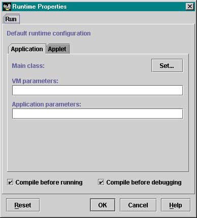 So far we haven't used anything unique to TINI in our hello_world class, so we should be able to execute it on the PC. This is one of Java's nice features. Within limits, you can run the same code on any Java-enabled platform. Let's try it. On the main JBuilder toolbar, click Run, and a 'runtime properties' dialog will open. JBuilder wants to know what we want to run (it won't make the obvious assumption that since our project has only one class it might be that class...). |