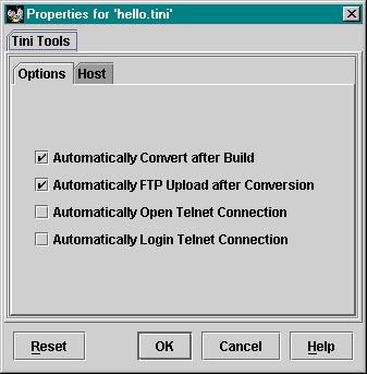 | Right click hello.tini, select Properties. In the options tab, clear the Telnet options. |