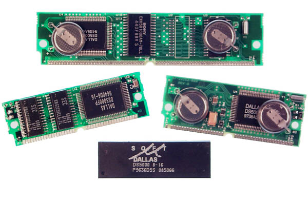 Clockwise from top: DS2251T-128 SIMM72, DS2252T-128 SIMM40, DS5000-8 DIP40, DS2250T-64 SIMM40. Secure Micro Selection Table |