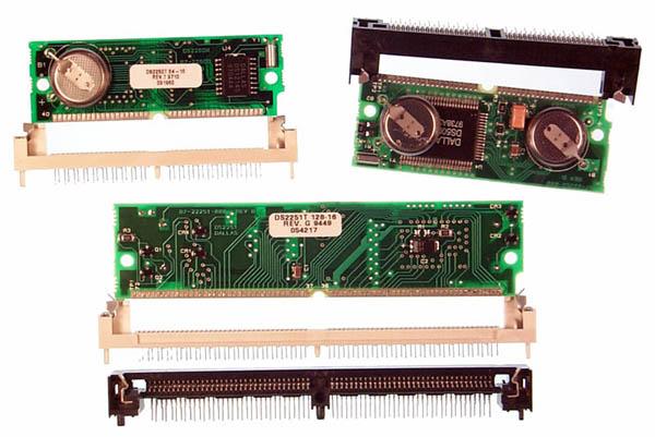 Clockwise from top: DS2250T-64 SIMM40 with white vertical socket, DS2252T-128 SIMM40 with black right angle socket, and on the bottom DS2251T-128 SIMM72 with white vertical and black right angle sockets. Secure Micro Selection Table |