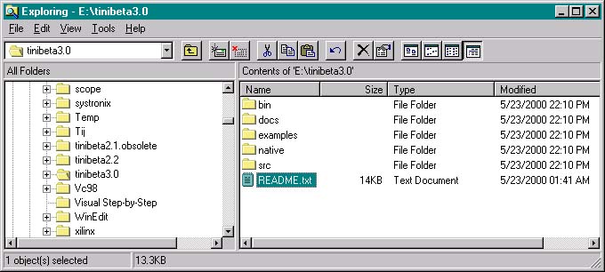 You should have the TINI 3.0 files in a structure that looks like this from Explorer: