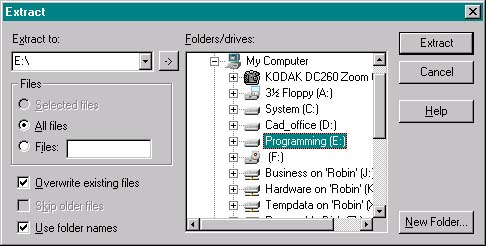 Click on extract and be sure you have "Use folder names" checked. Click the Extract button. I installed to my drive E, and winzip then created the folder e:\tinibeta3.0 and all the subfolders.