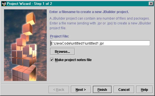 | Now create a new project. Hmm - JBuilder skips the /Sample3 folder, which was where we wanted the .jpr file to go, so we'll browse to it and create a new project peek_a_boo.jpr |