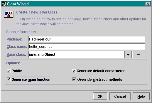 | Above is the new class wizard for a new class in the same package, and below for a new class in a new package. |